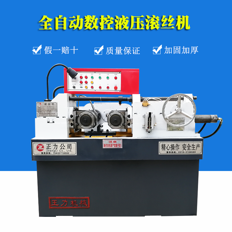 邢臺正力機械制造有限公司是國內高端平價滾絲機專業化制造企業。 本公司是集研制、開發 、生產與銷售為一體的大型機械廠家,現主要產品有:滾絲機,螺紋機床,縮經機,拔料機,冷軋壓圓機,雙組拉絲機等各種機械。地處燕趙大地南部邢臺市,是省級重合同、守信用、產品質量穩定型企業,河北省消費者協會信的過產品,產品暢銷全國各地,深受用戶的好評。          現擁有Z28-40、80、150、200、280、63型系列在五金建筑、汽摩配件、交通電力、標準件制作等高精度產品加工行業中,對高強度螺紋、網紋、花鍵、直斜紋、梯形螺紋、特殊軸類的滾軋加工有很強的優越性,以高效、精密、快捷的工作原理深受廣大用戶的信賴。         專用的液壓縮徑機WL-25、36、48、60、型操作簡便,適用范圍廣,生產效率高,使金屬擠壓快速成型,節約了原材料,提高了金屬密度和抗拉強度         本公司長期供應各種滾絲輪、縮徑機模具等各種配件。          產品暢銷河北,河南,山西,山東、遼寧、黑龍江、吉林、北京、天 津等省市自治區。我們不斷引進國內外先進技術,不斷優化產品結構,精心鑄造產品質量。王力品牌系列滾絲機、縮徑機、絲杠機是根據國內的先進機型加以改進,具有結構設計科學,結構合理、能耗低、精度高、 使用壽命長等優點。         我們正被更多的朋友接受,認可,因為我們用真誠……